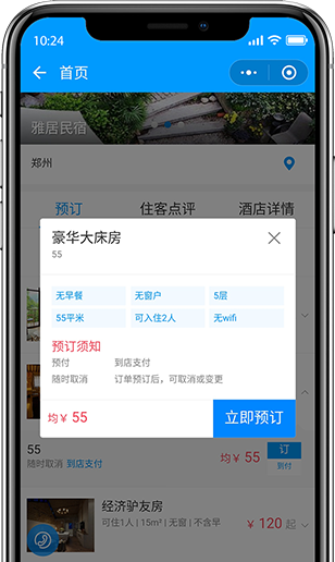 用戶可以通過“附近的小程序”,搜索、朋友圈分享等查看酒店信息、進行預訂,線下可掃碼進入,增加引流方式和流量入口,降低商家管理經營成本。